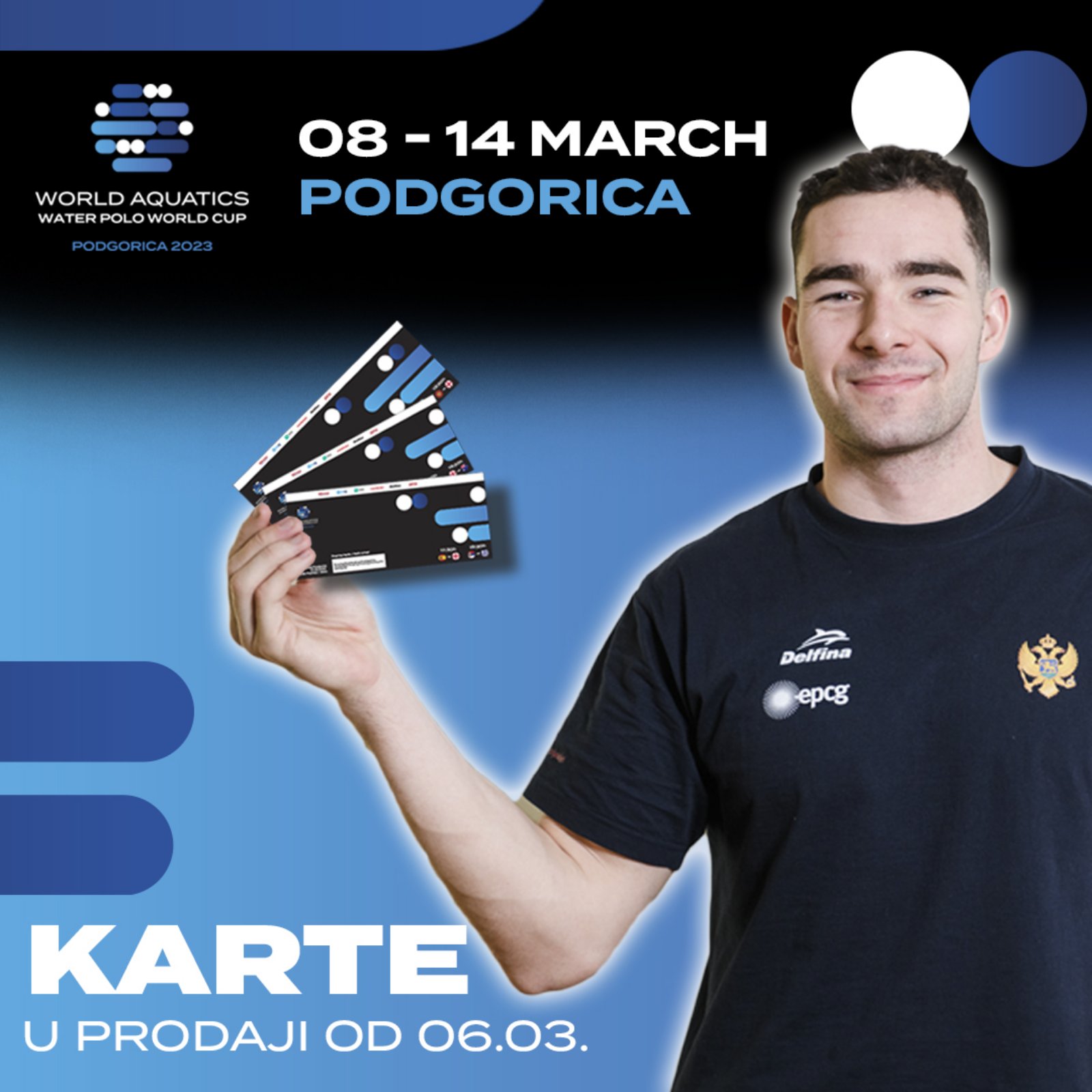 8. do 14. marta na prodajnom štandu VPSCG na zatvorenom bazenu SC „Morača“, dva sata prije početka prve utakmie.